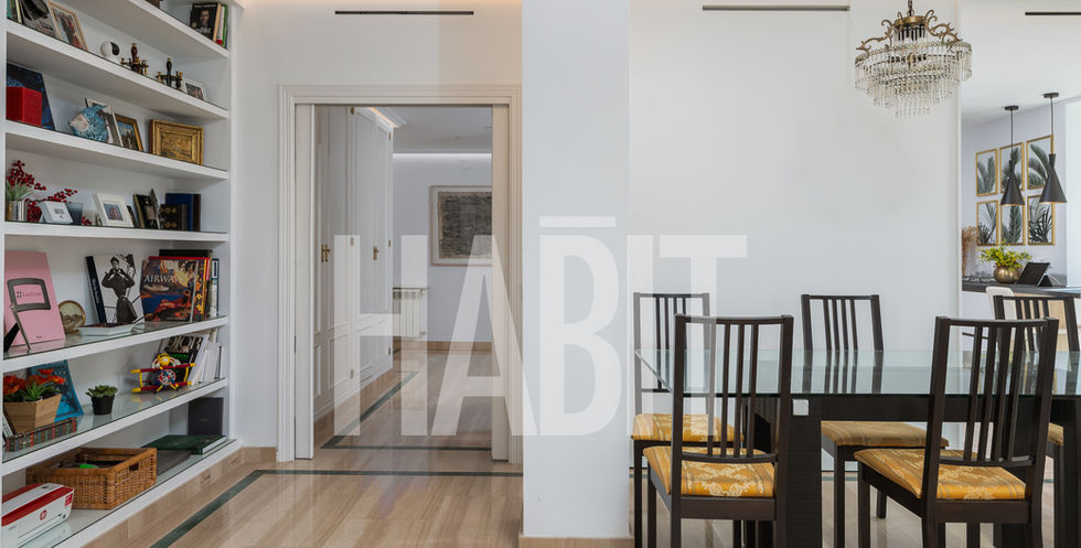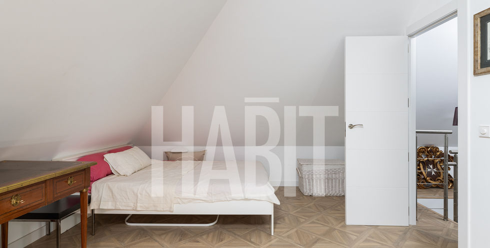 Ático muy luminoso, reformado recientemente cuidando el más mínimo detalle. Urbanización cerrada en Arturo Soria, lindando con el Pinar de Chamartín. La propiedad está formada por la unión de dos pisos dando lugar a una amplia vivienda, llena de luz, pero fácilmente reconvertible en dos pisos de tres habitaciones y dos baños cada uno según demanda del nuevo propietario. Jardines, piscina de verano y gimnasio hacen de esta complejo un lugar tranquilo y seguro donde vivir sin renunciar a la gran cantidad de servicios que ofrece la zona así como la buena comunicación de trasporte público. Tres plazas de garaje, una de ellas con cargador eléctrico y trastero completan la finca.